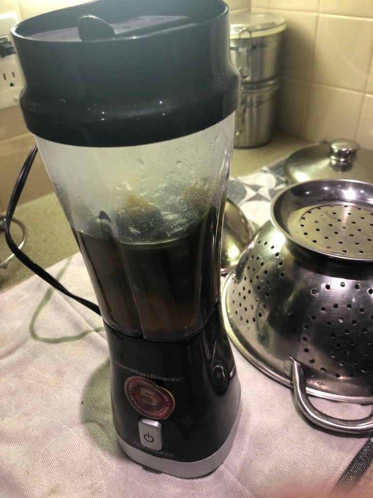 Then just blend it up! I only have a small blender but even that worked well. I reserved a bit of white parts of the leek for garnish