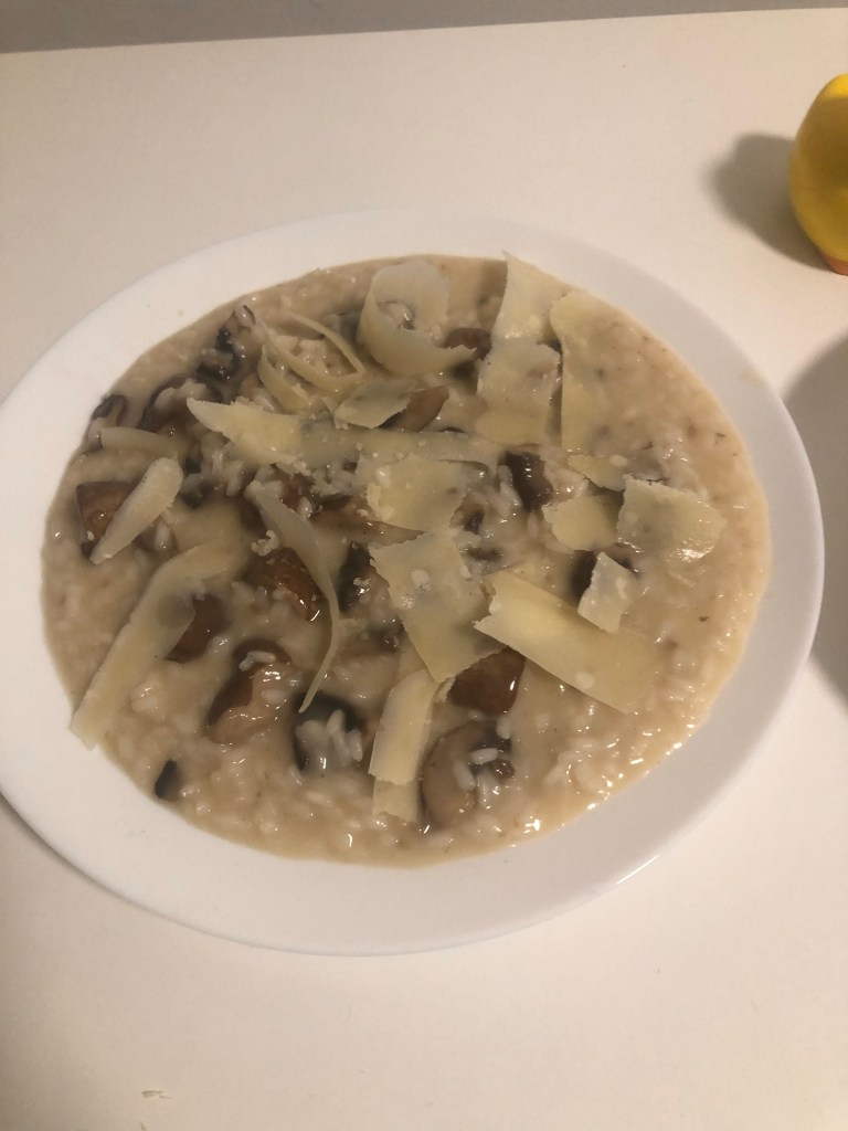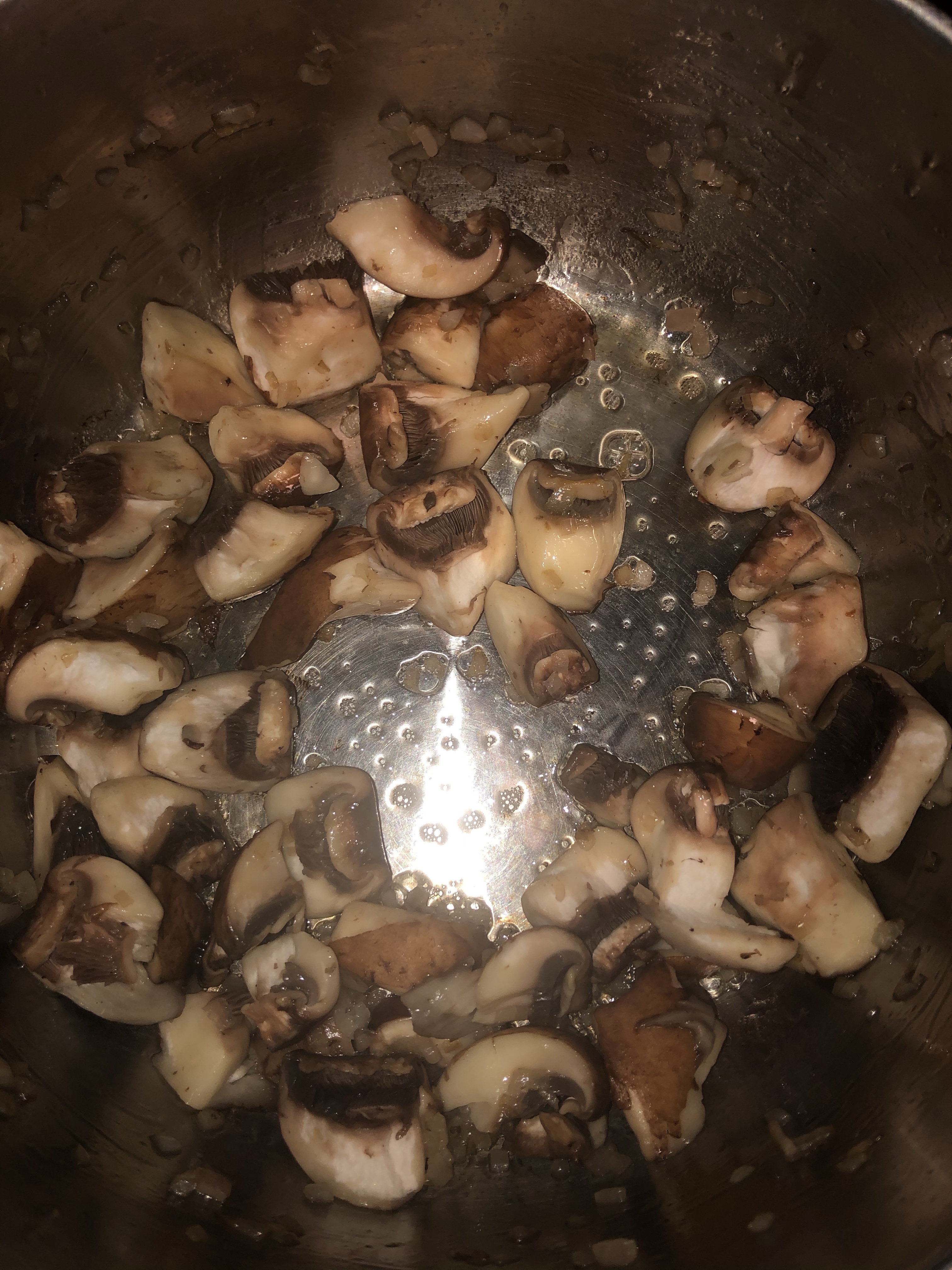 I added the mushrooms, and added more parm that I shaved with a peeler